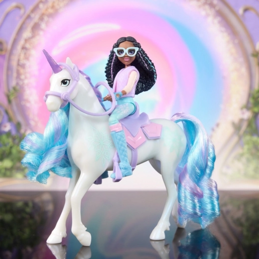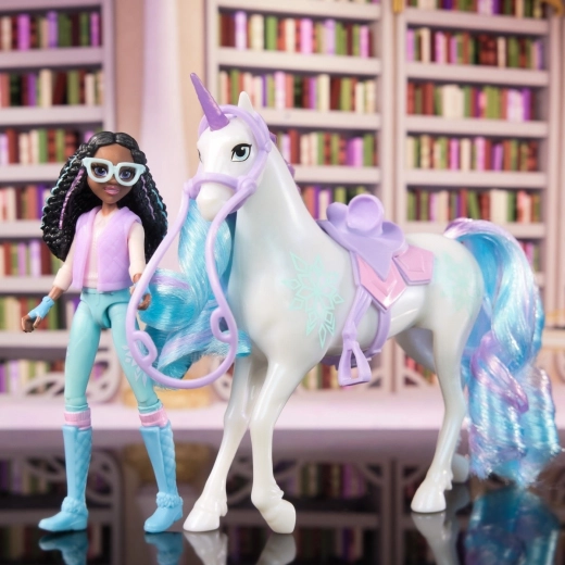 Proslavite prijateljstvo i čaroliju uz set Ava i Listka iz Akademije jednoroga, nadahnut popularnom animiranom serijom s NETFLIXA i dječjim knjigama. Lutkica Ava visine 11 cm vjerno je izrađena i ima sedam pokretnih zglobova za dinamične poze. Jednorog Listka mjeri 13 cm i ukrašen je posebnim obilježjima Magije biljaka s počešljanom ljubičastom i tirkiznom grivom i repom (četka je uključena). Postavite Avu na leđa Listke i krenite u avanturu! Ava može sigurno sjediti zahvaljujući uklonjivim uzdama i sedlu. Otkrijte više likova iz Akademije jednoroga, kao što su Sophia, Layla, Isabel i Valentina. Ove igračke idealan su dar za djecu koja vole jednoroge, lutkice i kreativnu igru.
