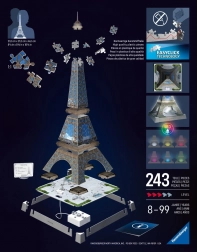 Otkrijte novu dimenziju slagalica s 3D puzzlama RAVENSBURGER i izradite vjeran model Eiffelovog tornja. Dijelovi od kvalitetne plastike čvrsto se drže zajedno, pa za izradu ne trebate nikakvo ljepilo. Gotov model je stabilan, ne deformira se i zahvaljujući glatkoj površini lako ga je očistiti vlažnom krpom.