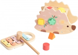 Veseli drveni ježić skriva dvije funkcije koje djeca obožavaju. Uz ovu igračku vježbat će preciznost pri zabijanju šarenih oblika i istovremeno otkrivati tonove skrivene u ksilofonu. Kombinacija igre i glazbe: