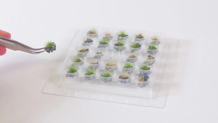 Jednostavno se lijepe na bilo koju podlogu uobičajenim ljepilom za izradu krajolika. Za uklapanje u veće travnate površine moguće ih je smjestiti izravno u podlogu premazanu ljepilom za travu. Naknadnim posipavanjem dobit ćete zelenu površinu koja djeluje vrlo prirodno.