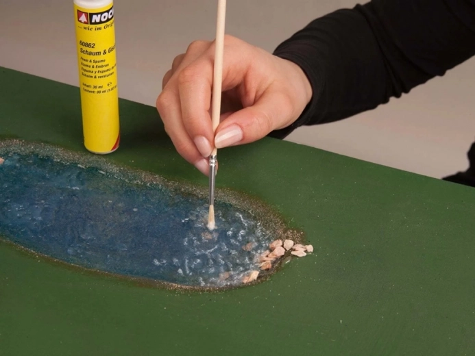 Modelna voda namijenjena je prikazu mirnih i plitkih vodenih površina, kao što su potopljene šljunčare, lokve ili riječni rukavci. Prozirni tekući materijal očvrsne tijekom nekoliko sati i stvara prozirni sloj visine 1 do 1,5 mm, što daje realističan izgled svakoj sceni. Površina ostaje glatka i prirodna.