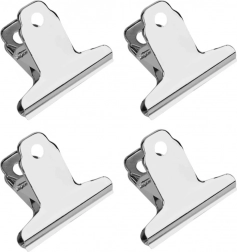 Ove klipse izrađene su od izdržljivog metala, što jamči njihovu trajnost i mogućnost ponovne uporabe. Njihov jednostavan oblik i sjajna, kromirana površina daju im profesionalan izgled. Zahvaljujući otvoru u ručki, klipse možete lako objesiti na ploču ili kuku.