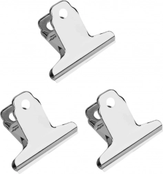 Predstavljamo vam set od tri masivna klipa izrađena od galvaniziranog metala koji nude visoku otpornost na tlak. Ovi klipovi imaju glatke rubove, elastičan mehanizam i otvor koji omogućuje vješanje, što ih čini praktičnim alatom za svakodnevnu upotrebu.