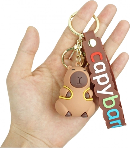 Privjesak Kapibara sa žutim ruksakom idealan je dodatak za ljubitelje slatkih i originalnih predmeta. Figurica kapibare s ruksakom izrađena je od mekog, na dodir ugodnog silikona te opremljena čvrstom karabinom i klasičnim prstenom za lako pričvršćivanje.
