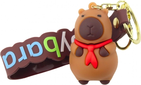 Stilski privjesak kapibara s crvenom maramom - mekan, fleksibilan, idealan za ključeve i torbe. Naglasak na detalje.