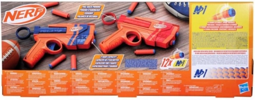 Blasteri Nerf N serije jamče dvostruku zabavu zahvaljujući dvama kompaktnim blasterima, idealnima za brzu akciju i brze reakcije. Dio duopaka je 12 pjenastih strelica Nerf N1, koje se odlikuju iznimnom preciznošću i dometom.
