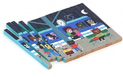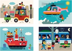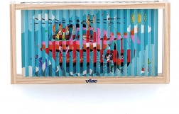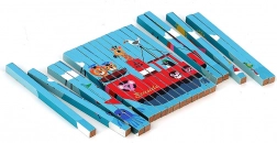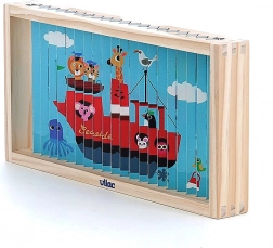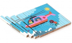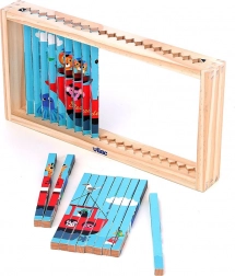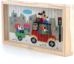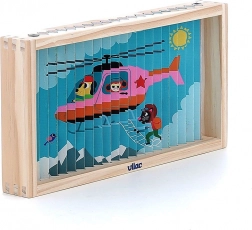 Otkrijte svijet iz različitih kutova s ovom četverodimenzionalnom drvenom slagalicom. Zahvaljujući dizajnu Ingele P. Arrhenius čekaju vas četiri različite ilustracije: automobil, brod, helikopter i vlak. Umetanjem drvenih štapića u postolje dijete ne samo da istražuje skrivene slike, već također razvija logičko razmišljanje i sposobnosti opažanja.