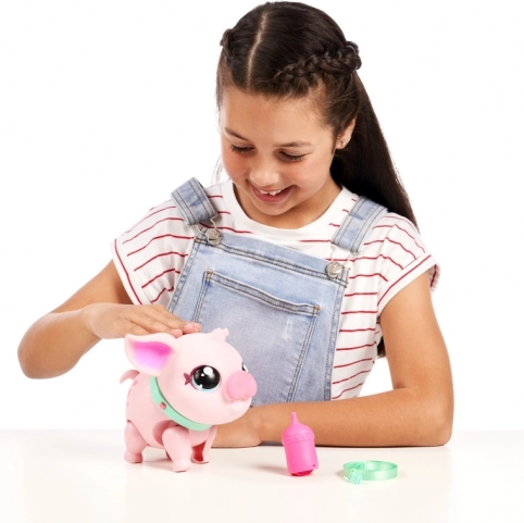 Otkrij čarobnog ljubimca koji oživljava u dječjim rukama. Piggly je mekano ružičasto prase s preslatkim očima i ogrlicom, koje reagira na dodir, pokret i njegu. Zahvaljujući povodcu lako ga možeš povesti u šetnju, a kad ogladni, nahranit ćeš ga bočicom.