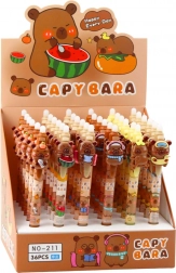 Automatska olovka s motivom kapibare nudi ne samo funkcionalnost, već i zabavan dizajn koji će cijeniti svi ljubitelji ovih životinja. Na vrhu olovke nalazi se dekorativna 3D figurica izrađena od meke gume, koju možete lako stisnuti, što stvara razigrani element.