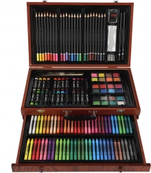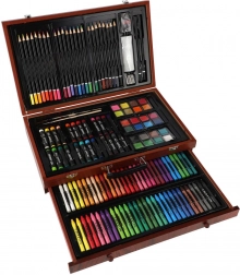 Ovaj bogati likovni set odličan je izbor za početnike i napredne autore koji traže sve potrebno na jednom mjestu. Kompaktni drveni kovčežić osigurava pregledno spremanje i jednostavno prenošenje, pa možete stvarati kod kuće, u školi i na putu.