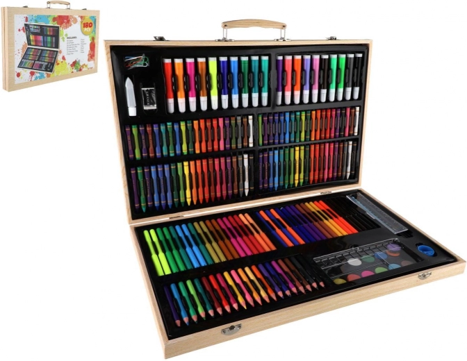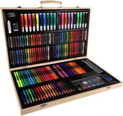 Otkrijte svestrani kreativni set za slikanje i crtanje koji sadrži 180 dijelova uredno posloženih u elegantnom drvenom kovčegu s kopčanjem. Odličan je za kućno stvaranje, školske projekte i kao prijenosni likovni set za putovanja.
