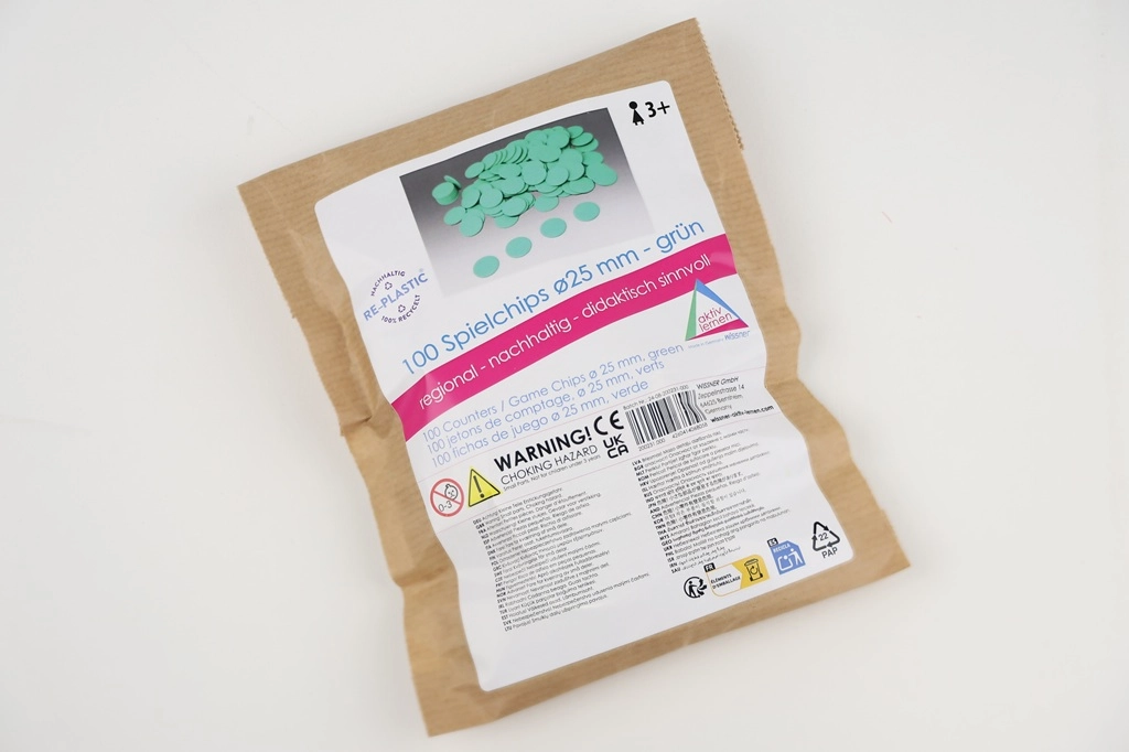 Univerzalni zeleni žetoni idealni kao dodatak društvenim i edukativnim igrama. Podupiru razvoj računskih vještina te se mogu koristiti za bodovanje i vizualizaciju zadataka.