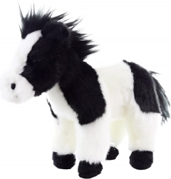 Plišani konj ima realističan crno-bijeli uzorak, koji mu daje autentičan izgled. Njegova mekana griva i rep pojačavaju osjećaj realističnosti.