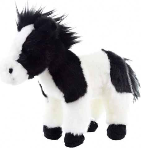 Crno-bijeli plišani konj od eco-friendly materijala za djecu od 0 godina, idealan za maženje i igre.