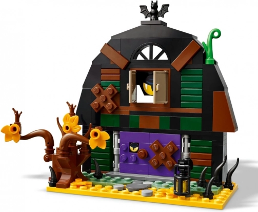 Složite škripavu štalu s tamnim zidovima, ljubičastim vratima i šišmišem na krovu. Unutra ćete otkriti niz iznenađenja – od skrivenih “zubi” iza vrata preko ukrašenog oka do zelene bočice i crne posude. Dio seta je i stablo te lanterna koji upotpunjuju tajanstvenu atmosferu.
