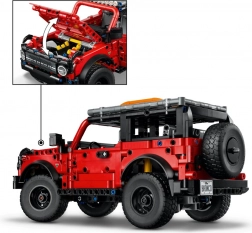Otkrijte set LEGO Technic SUV FORD BRONCO za djecu od 9 godina s realističnim funkcijama – otvarajućim vratima, upravljačem preko stražnjeg kotača, neovisnim ovjesom, V6 motorom i krovnim nosačem s terenskim trakama. Sjajan poklon za ljubitelje automobila i off-road avantura.