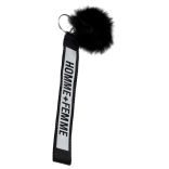 Opremljen je crnim pomponom i tekstilnom trakom HOMME+FEMME, koji dodaju torbi osobit stil.