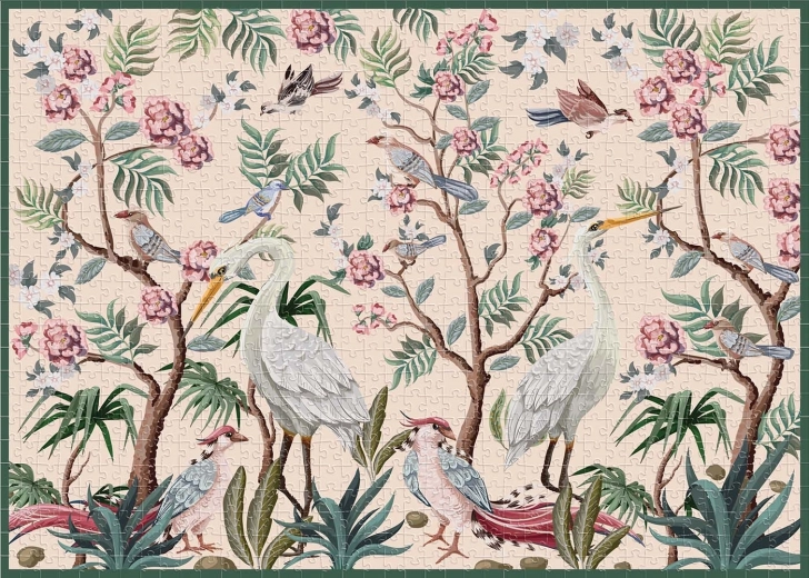 Otkrijte ljepotu tajanstvenog vrta s našom slagalicom od 1000 dijelova, gdje ptice isprepliću svoja krila među procvalim stablima. Savršeno za ljubitelje prirode i kolekcionare slagalica.
