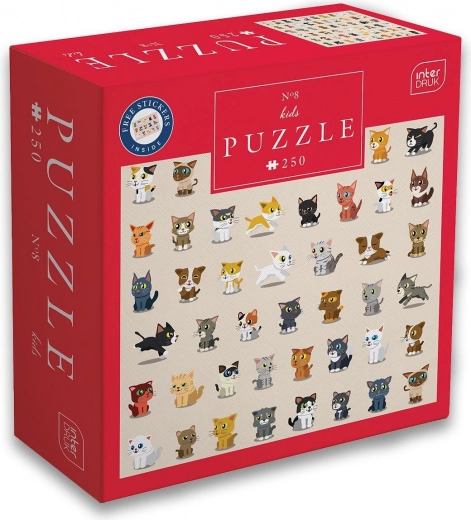 Puzzle s naljepnicama Mačke 250 dijelova, idealne za zabavu i kreativnost s arkom naljepnica.