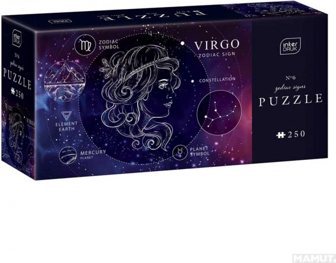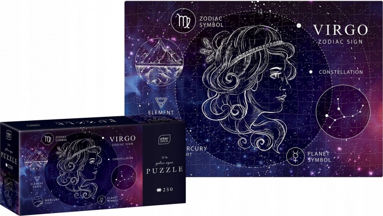 Interdrukt Puzzle Zodijak: Djevica 250 dijelova nudi prekrasan i detaljan prikaz znaka zodijaka Djevice, idealno za sve ljubitelje astrologije i slagalica. Dimenzije složenog puzzla su 48 x 33 cm.