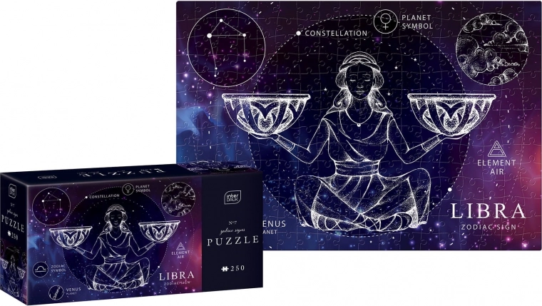 Otkrijte radost opuštanja s našom jedinstvenom slagalicom koja prikazuje zodijački znak Vaga. Ova slagalica od 250 dijelova nudi idealnu razinu težine za mirne dane kod kuće. Razvijajte svoju kreativnost i sposobnosti uz ovakve aktivnosti.