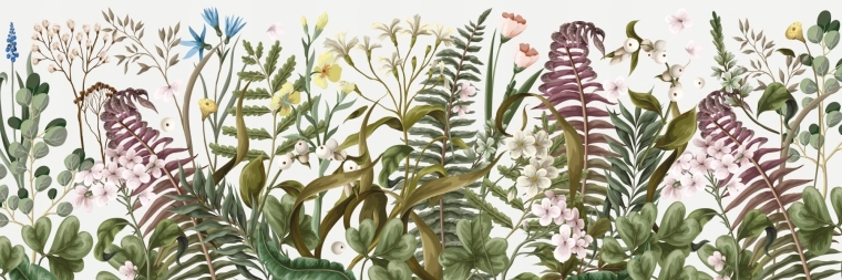 - Zadivljujući cvjetni uzorak - Paprati i cvijeće stvaraju harmoničnu sliku prirode.