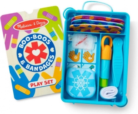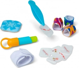Njegovateljski komplet Melissa & Doug koji djeci omogućuje igranje doktora. Djeca mogu stvoriti izmišljene ogrebotine i pomoću priloženih alata ih ukloniti.