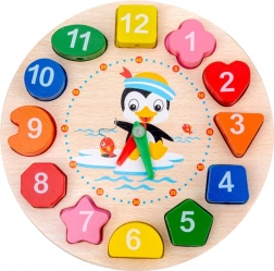 Sat ima dva pomična pokazivača i minutne oznake koje djecu uče punim satima te usavršavaju njihovu sposobnost rada s vremenom. Na brojčaniku je veseli pingvin koji privlači pozornost i onih najmlađih.