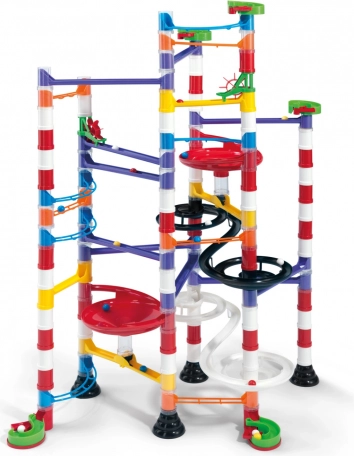 Šarena kuglična staza za djecu od 6 godina, koja potiče njihovu kreativnost i maštu. Povezivanjem dijelova djeca mogu stvoriti raznolike staze pune mostova, spirala i drugih prepreka koje je zabavno promatrati.