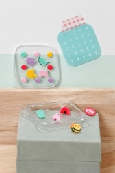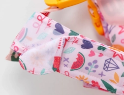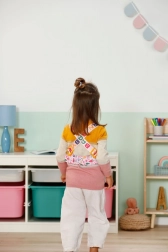 Set šarenih ukrasa za jednostavno pričvršćivanje omogućuje djeci mijenjati izgled nosiljke prema raspoloženju. U kompletu je i kutijica za pohranu.