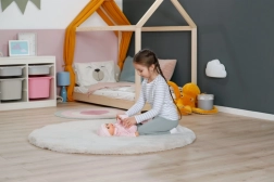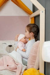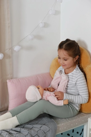 Ugodno podatna konstrukcija idealna je za grljenje i svakodnevnu igru. Djeca lutku lako drže, nose i polažu na spavanje.
