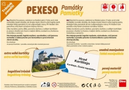 Pexeso Značajna mjesta donosi tradicionalnu zabavu u obliku traženja parova, gdje igrači moraju pronaći fotografiju mjesta i odgovarajući naziv. Svi nazivi su na češkom jeziku, a igra potiče razvoj memorije, logičkog razmišljanja i fine motorike. Igra je jednostavno dostupna i starijim igračima i maloj djeci, zahvaljujući obojenim uglovima kartica koji olakšavaju traženje. Glavne značajke: