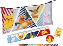 Službeno licencirani školski set s motivom POKÉMON sadrži sve što djeci treba za školu i kod kuće: pernicu, olovku s gumicom, gumicu, šiljilo i ravnalo. Kompaktna veličina 19 × 11 cm lako stane u ruksak i odlična je i kao poklon. Prikladno za djecu od 3 godine.