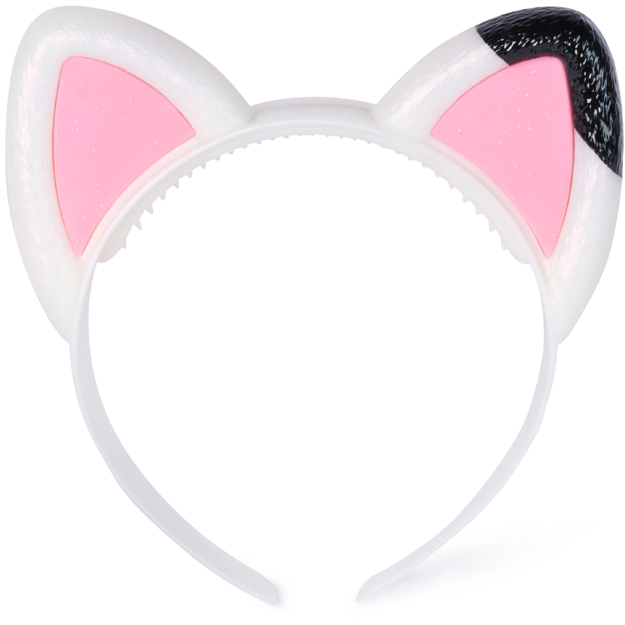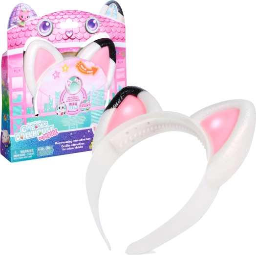 Uđite u svijet serije Gabby’s Dollhouse s čarobnom trakom s mačjim ušima. Bijela izvedba s ružičastom unutrašnjošću i slatkom crnom točkicom na jednom uhu razveselit će svakog malog obožavatelja. Pritiskom na uho čuju se Gabbyn smijeh, mjaukanje i vesela melodija. Idealno za preoblačenja, igre uloga i kao dodatak kostimu.