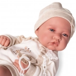Ova realistična beba lutka španjolskog brenda Antonio Juan izrađena je u veličini 42 cm i nudi potpuno vinilno tijelo s autentičnim dječjim crtama. Posebno omekšani vinil korišten pri izradi vrlo je ugodan na dodir, što pojačava realističan doživljaj tijekom igre.
