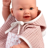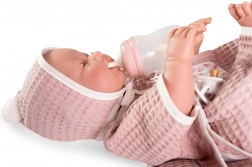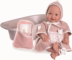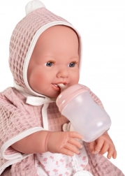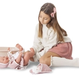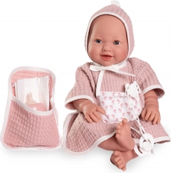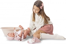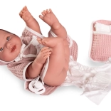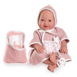 Ova španjolska lutka idealan je poklon za vašu djecu. Ručno je izrađena, a njezino potpuno vinilno tijelo ugodno je na dodir. Detalji poput bebinih nabora i realistično prikazanog spola daju dojam prave bebe.