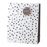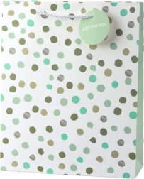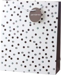 Elegantna poklon-vrećica izrađena je od čvrstog laminiranog papira, što jamči njezinu trajnost i estetski izgled. Uvrtane špag-rukohvati nude udobno i sigurno nošenje čak i težih darova. Ukrasna okrugla visa s natpisom „Just for you” daje dozu osobnosti.