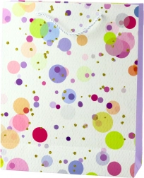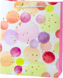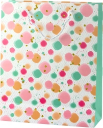 Ova poklon-vrećica privlači pažnju svojim originalnim dizajnom i osebujnim karakterom koji će vašem daru dati jedinstven izgled. Nježne pastelne i neonske točkice u kombinaciji sa zlatnim detaljima stvaraju suptilan i elegantan dojam.