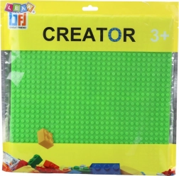Konstrukcijska ploča izrađena je od visokokvalitetne plastike, koja osigurava otpornost na savijanje i pucanje. Glatka površina s gustim izbočinama omogućuje precizno i stabilno pričvršćivanje kockica. Ploča je pogodna i za kućnu upotrebu i za škole, igraonice ili obrazovne centre.