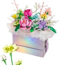 Buket sadrži razne vrste cvijeća poput ruža, tulipana i tratinčica, nadopunjene nježnim florističkim elementima. Doživljaj je dodatno obogaćen LED osvjetljenjem, koje kompoziciji navečer daje bajkovit izgled. Napajanje preko LR44 baterija, koje su dio seta.