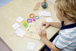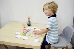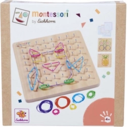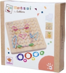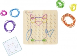 Ova Montessori geometrijska ploča osmišljena je za poticanje dječje kreativnosti i motoričkih vještina. Sa 64 čavlića i 60 raznobojnih gumica djeca mogu stvarati niz uzoraka i oblika:
