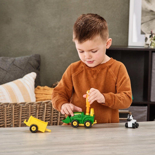 Zabavni John Deere traktor Bonnie za djecu. S odvijačem i pokretnim kotačima potiče kreativnost i učenje.