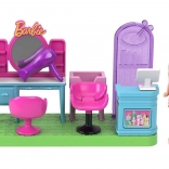 Set je dopunjen interaktivnim elementima, poput podesive stolice i okretnog pokazivača, koji djeci omogućuju odlučiti je li salon otvoren ili zatvoren. Mini lutka Barbie savija se u struku, što omogućuje lako postavljanje na stolicu ili na recepciju. Dodatna prednost je postolje u obliku srca, kompatibilno s ostalim setovima Mini BarbieLand.