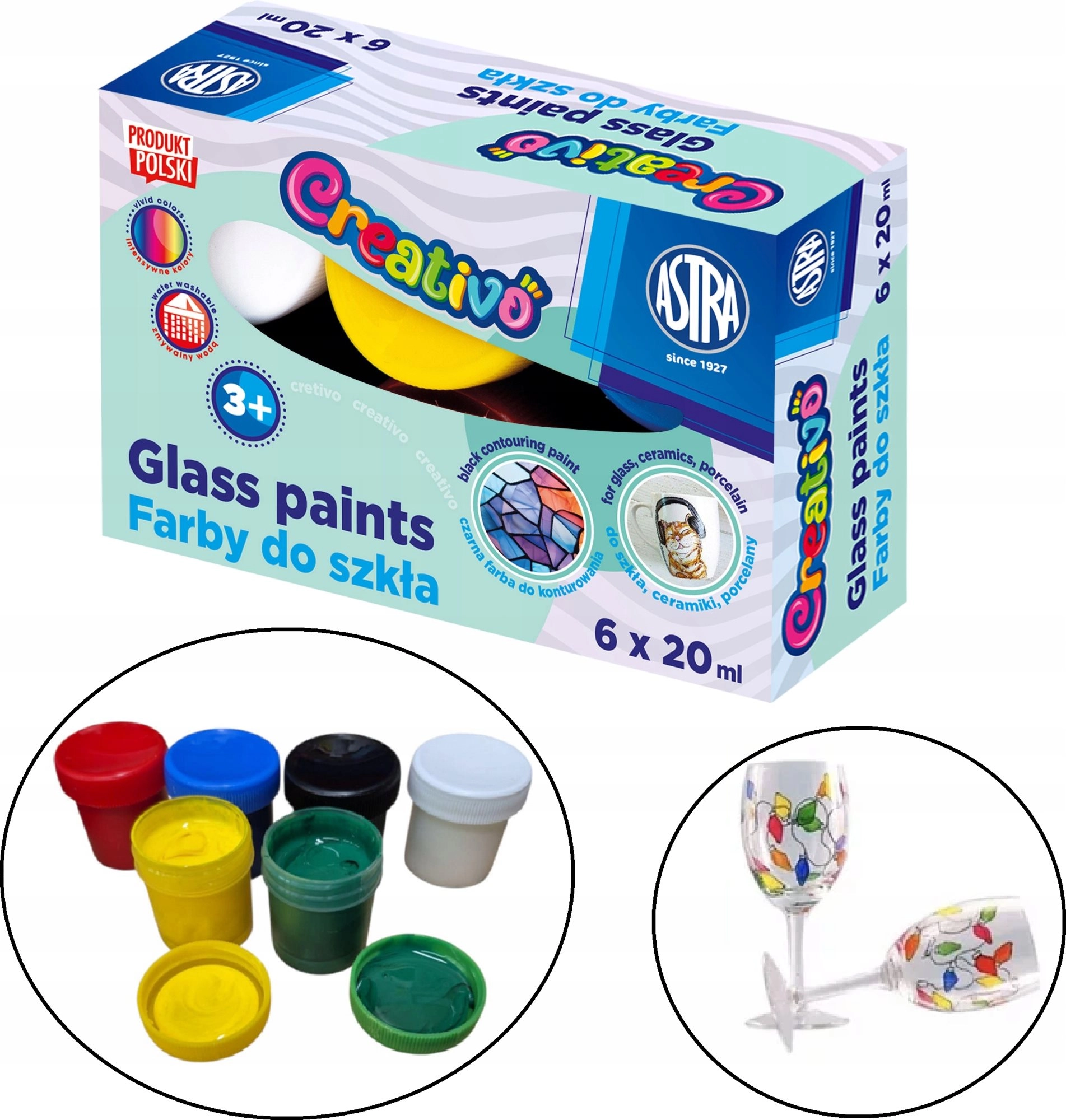 Poluprozirne boje za staklo ASTRA CREATIVO u setu 6×20 ml idealne su za kreativno stvaranje i originalne dekoracije. Prikladne za staklo, keramiku i porculan, jednostavne za upotrebu i donose predivne rezultate – savršene za DIY projekte, darove i likovne aktivnosti s djecom.