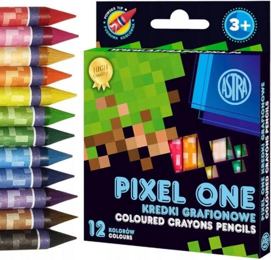 Kaolinske pastele ASTRA s motivom PIXEL ONE idealne su za crtanje, bojanje i pisanje na papiru. Njihova jezgra od kaolinske gline pruža žive, intenzivne boje i izvrsno prekriva velike površine, dok puderasti vrh omogućuje stvaranje finijih i mekih prijelaza. Okrugli oblik osigurava udoban hvat, a papirnato omotač s lijepim tiskom u boji pastele razveselit će svakog obožavatelja motiva PIXEL ONE.