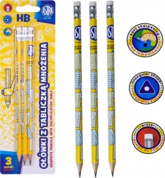 Set od tri olovke ASTRA s tvrdoćom HB i praktičnim otiskom tablice množenja olakšava učenje i pisanje. Nude ergonomsko trokutasto tijelo za udoban hvat, kvalitetnu minu 2,2 mm i praktičnu gumicu na kraju. Drvo potječe iz održivo gospodarenih šuma.