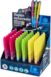 Praktična gumirajuća olovka ASTRA OOPS! sa brisivom tintom za besprijekorno pisanje. Zahvaljujući širini traga 0,6 mm piše glatko i precizno, tijelo od protuklizne plastike dobro leži u ruci, a zamjenjivi plavi uložak produljuje vijek trajanja. Neon izvedba u miksu boja, pakiranje 1 kom.