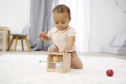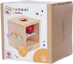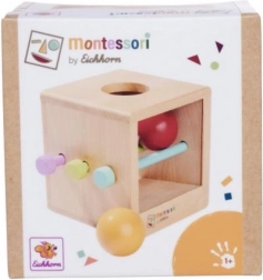 Montessori kutija temelji se na načelima Montessori pedagogije: dijete ubacuje kuglu u otvor, promatra njezino kretanje te uči koncentraciju i strpljenje. Umetnuti štapići privremeno sprječavaju prolaz, pa mali istraživači iskušavaju što će se dogoditi nakon njihova vađenja. Bez štapića aktivnost je jednostavnija i idealna za mlađu djecu.