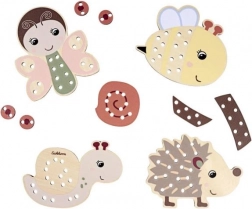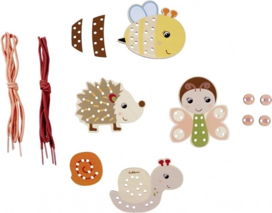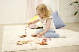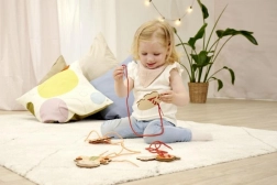 Ovaj drveni set za vezenje sa životinjama potiče kreativnost i koncentraciju. Djeca mogu ukrasiti životinjice pomoću uzica i drugih dodataka te tako stvoriti originalne uratke koji će im pružiti puno zabave.