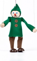 Ova kvalitetna lutka lovca pažljivo je izrađena od drva i odjevena u tekstilnu odjeću. Zahvaljujući jednostavnom upravljanju pomoću niti, djeca lako pokreću ruke i udahnjuju liku život. Odlična je za kućno kazalište i školske priredbe.